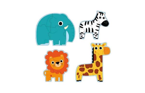 Deze leuke beginnerspuzzel in thema 'jungle' bestaat uit 4 verschillende puzzels die respectievelijk uit 3, 4, 5, 6 stukjes bestaan. Ze zijn leuk geïllustreerd en bestaan in verschillende leuke thema's.