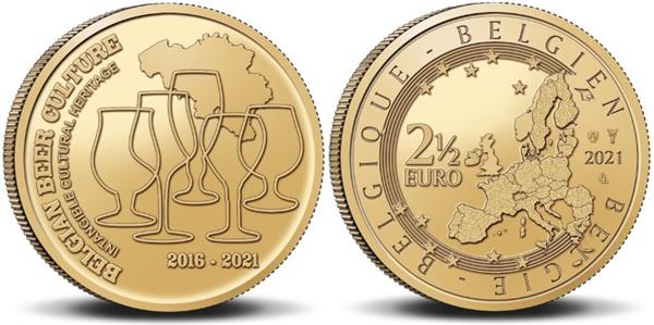 België heeft een 2,5 Euromunt uitgegeven in 2021 met als thema: Biercultuur. België staat bekend om de kwaliteitsbieren dat het produceert, dat over de hele wereld met veel liefde gedronken wordt. Een aantal bekende Belgische bieren zijn: Palm, Affligem, La Chouffe en Pauwel Kwak, dit laatste biertje wordt vaak uit een typisch glas gedronken. In totaal kent België maar liefst 1300 verschillende biersoorten die zowel in grote brouwerijen als zeer kleine brouwerijen met liefde gebrouwen worden. 5 jaar geleden heeft UNESCO zelfs het Belgische biercultuur op de lijst van Immaterieel Cultureel Erfgoed van de Mensheid gezet, een grotere eer konden de Belgische biersoorten haast niet krijgen. Op de voorkant van de munt ziet men een aantal typische bierglazen met aan de linker kant de tekst: BELGIAN BEER CULTURE (Belgisch Biercultuur). Verder ziet men de landkaart van België. Op de achterkant van de munt ziet men een afbeelding van de kaart van Europa. In cirkelvorm ziet men de landnaam België in haar drie moedertalen weergegeven BELGIE - BELGIQUE - BELGIEN (Nederlands, Frans en Duits). Ook wordt de waarde aanduiding van 2,50 Euro weergegeven en het jaartal van uitgifte 2021. De munt is verpakt in een prachtige Coincard waarbij de Franse versie van de Coincard te herkennen is aan de tekst die zowel in het Fransals in het Duits op de voorkant weergegeven wordt. Deze Goudgele Coincard wordt afgewerkt met een schitterende, witte, schuimkraag. Bij Eurocoinhouse kunt u allerlei verschillende soorten euromunten kopen, maar ook accessoires, sets en bijzondere uitgaves van herdenkingsmunten.