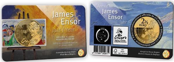 België 2,5 Euro 2024 'James Ensor' Coincard Nederlands. België heeft een bijzondere 2,5 Euromunt uitgegeven met als thema: James Ensor. James Ensor (13 april 1860 - 19 november 1949) was een Belgische kunstschilder die met zijn symbolisme eigenlijk een soort van nieuwe moderne kunst in België creëerde. James Ensor werd geboren in Oostende en begon op zeer jonge leeftijd al met schilderen. Zijn ouders zagen dat hij talent had. Hij studeerde aan de academie in Brussel. Hier werd voornamelijk beïnvloed door Mariette Rousseau, een mycologe uit Brussel. Op de voorkant van de munt ziet men een detail van het schilderij: de Intrige, met hiervoor een zelfportret van James Ensor. Op de achterkant van de munt ziet men de landkaart van Europa, wordt de waardeaanduiding van 2,5 Euro weergegeven en ziet men het jaartal van uitgifte, 2024. De munt is verpakt in een schitterende Coincard waarbij de Nederlandse versie van de Coincard te herkennen is aan de tekst die zowel in het Nederlands als in het Engels op de voorkant weergegeven wordt. Bij Eurocoinhouse kunt u allerlei verschillende soorten euromunten kopen, maar ook accessoires, sets en bijzondere uitgaves van herdenkingsmunten.