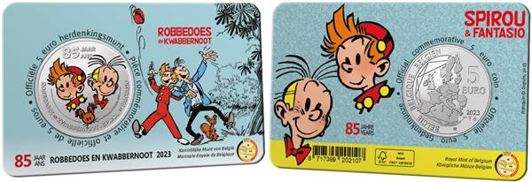 België 5 Euro 2023 'Robbedoes en Kwabbernoot' Coincard Kleur