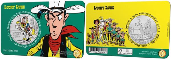 België 5 Euro 2024 'Lucky Luke' Coincard Kleur