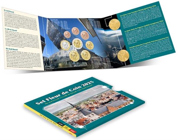 België BU 2025. De BU set van België 2025 heeft als thema: Hasselt. Dit is de zesde set uit een serie BU-sets die een belangrijke Belgische stad als thema hebben. Hasselt is de hoofdstad van de Belgische provincie Luxemburg en ligt in het Noordoosten van België. Hasselt heeft ruim 90.000 inwoners en staat bekend om zijn Jenever! De stad is al 860 jaar oud en kent tal van oude gebouwen maar staat daarnaast ook bekend zijn 2,5 hectare grote Japanse Tuin, de grootste van Europa! In de Belgische BU-set van 2025 zijn alle 8 munten van 2025 verpakt (1 Cent 2025 t/m de Normale 2 Euro 2025). Als extra zijn in deze BU-set de 2,5 Euro 2025 '50 Jaar ESA' en de 2,5 Euro 2025 'Streetart' verpakt. Diverse munten van België 2025 zullen niet los in circulatie komen! De oplage van de BU-set van België 2025 is slechts 6.000 exemplaren. Bij Eurocoinhouse kunt u allerlei verschillende soorten euromunten kopen, maar ook accessoires, sets en bijzondere uitgaves van herdenkingsmunten.
