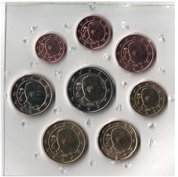 België UNC 2022. Dit is de complete serie Euromunten van België 2022. Vanaf het jaar 2014 is Koning Filip afgebeeld op de Belgische Euromunten. Op de munten ziet men Koning Filip naar rechts kijkend. Aan de linkerkant van de munten ziet men het Koninklijk Monogram met daaronder de afkorting van de landsnaam Belgie (BE). Aan de onderkant van de munten ziet men het jaartal 2022. Links van het jaartal ziet men het muntmeesterteken van Mevr. Ingrid Van Herzele, namelijk het Wapenschild van de gemeente Herzele. Rechts van het jaartal ziet men het muntteken van de Koninklijke Belgische Munt, Aartsengel Sint-Michiel ook wel Aartsengel Michaël genoemd, de beschermheilige van Brussel. Diverse munten van België 2022 zullen niet los in circulatie komen. Bij Eurocoinhouse kunt u allerlei verschillende soorten euromunten kopen, maar ook accessoires, sets en bijzondere uitgaves van herdenkingsmunten.