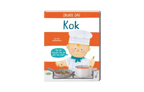 Pfoe! Wat een drukke dag. Help de kok als hij het beslag mengt, de pannenkoek omdraait en de wortels snijdt. Door de interactieve flappen doe je zelf mee! Geschikt vanaf 2 jaar. Leer de beroepen kennen en oefen de motoriek. DRUKKE DAG is een geweldige serie over beroepen!