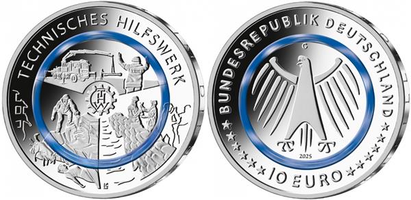 Duitsland 10 Euro 2025 'Technische Hulpdienst'. Duitsland heeft een bijzondere 10 Euromunt uitgegeven met als thema: De Technische Hulpdienst. De Technische Hulpdienst, ook wel: De Technische Hulporganisatie (THW) werd opgericht op 22 augustus 1950 als civiele veiligheidsdienst. DE THW zal altijd technische bijstand verlenen om de bevolking te beschermen bij noodsituaties en ongevallen, tijdens buitenlandse missies namens de federale overheid en om lokale gevaren af te wenden. De Technische Hulpdienst kent 90.000 leden waarvan er maar liefst 88.000 vrijwilliger zijn. Op de voorkant van de munt ziet men meerdere vrijwilligers in hun werk verrichten en ziet men in het midden het logo van de THW. Verder ziet men in het Duits geschreven: TECHNISCHES HILFSWERK. Op de achterkant van de munt staat de tekst: Bundesrepublik Deutschland (Bondsrepubliek Duitsland) wordt het jaartal van uitgifte, 2025 weergegeven en wordt de waardeaanduiding van 10 Euro weergegeven. De bekende adelaar staat gecentreerd in het midden . Wij leveren bij een losse munt de letter naar onze keuze. De munt is verpakt in een bedrukte munthouder. Bij Eurocoinhouse kunt u allerlei verschillende soorten euromunten kopen, maar ook accessoires, sets en bijzondere uitgaves van herdenkingsmunten.