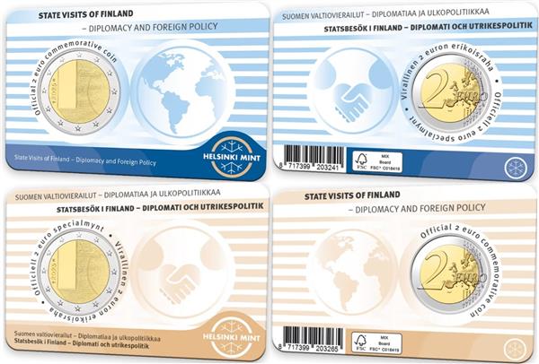 Finland 2 Euro 2025 'Diplomatie en Buitenlands Beleid' Coincard Engels + Fins. Finland heeft een bijzondere 2 Euromunt uitgegeven met als thema: Diplomatie en Buitenlands Beleid. Finland staat bekend om hun internationale samenwerking en proberen altijd hun politieke, culturele en economische relaties hoog te houden. Uiteraard zijn de Finnen vertegenwoordigd bij de Ambassade in Brussel waarbij de Finse diplomaten hun voornaamste taak is: Het zo goed mogelijk laten horen van de belangen en het beleid van Finland in de EU en dit altijd te verdedigen. Op de voorkant van de munt ziet men een deur, die de onderhandelingen moesten voorstellen die plaatsvinden achter gesloten deur. Verder wordt het jaartal van uitgifte, 2025 weergegeven. U ontvangt hier zowel de Finse als de Engelstalige Coincard! Bij Eurocoinhouse kunt u allerlei verschillende soorten euromunten kopen, maar ook accessoires, sets en bijzondere uitgaves van herdenkingsmunten.