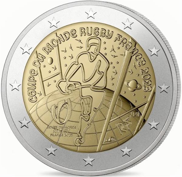 Frankrijk 2 Euro 2023 'WK Rugby 2023'. Frankrijk heeft een bijzondere 2 Euromunt in 2023 uitgegeven met als thema: WK Rugby 2023. Het is de tweede keer dat Frankrijk het WK Rugby organiseert, de eerste keer was in 2007. Het WK Rugby 2023 is de meest prestigieuze rugbytoernooi ter wereld en vindt sinds 1987 om de vier jaar plaats. Het WK Rugby wordt gehouden van 8 september 2023 tot 28 oktober 2023. Het toernooi vindt plaats in verschillende steden, zoals: Lille, Nice, Parijs en Toulouse. Favoriet voor het toernooi is Zuid-Afrika, dat dit toernooi ook in 2019 wist te winnen. Op de voorkant van de munt ziet men een gestileerde rugbyspeler met een bal in zijn hand. Onder zijn voeten ziet men de wereldbol. Verder ziet men de tekst: COUPE DU MONDE RUGBY (WK Rugby) en ziet men de landsnaam: FRANCE (Frankrijk). Tot slot wordt het jaartal van uitgifte, 2023, weergegeven. De munt is verpakt in een bedrukte munthouder. Bij Eurocoinhouse kunt u allerlei verschillende soorten euromunten kopen, maar ook accessoires, sets en bijzondere uitgaves van herdenkingsmunten.