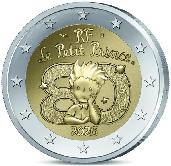 Frankrijk 2 Euro 2026 'Le Petit Prince' (De Kleine Prins) UNC. Frankrijk heeft zijn eerste bijzondere 2 Euromunt uitgegeven met als thema: Le Petit Prince. Le Petit Prince werd geschreven door Antoine de Saint-Exupery en werd voor het eerst gepubliceerd in Frankrijk in het jaar 1946! Het bijzondere van dit sprookje is dat Antoine de Saint-Exupery deze schreef toen hij in een hotel in New York verbleef. Le Petit Prince werd dan ook voor het eerst gepubliceerd in New York (3 jaar eerder dan in Frankrijk). Le Petit Prince is vertaald in 627 verschillende talen en dialecten en is hiermee één van de meest vertaalde en gelezen boeken ter wereld! Om te herdenken dat Le Petit Prince 80 jaar geleden voor het eerst gepubliceerd werd in Frankrijk, heeft de Monnaie de Paris besloten om hier een bijzondere 2 Euromunt over uit te geven. Op de voorkant van de munt ziet men Le Petit Prince voor het getal 80 staan, met hierboven de tekst: LE PETIT PRINCE. Onderin de munt wordt het jaartal van uitgifte, 2026 weergegeven. De munt is verpakt in een bedrukte munthouder. Bij Eurocoinhouse kunt u allerlei verschillende soorten euromunten kopen, maar ook accessoires, sets en bijzondere uitgaves van herdenkingsmunten.