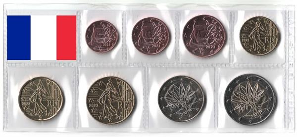 Frankrijk UNC 2023. Op de 1 + 2 + 5 cent munten ziet men Marianne afgebeeld. Op de 10 + 20 + 50 cent munten ziet men de zaaister afgebeeld. Frankrijk heeft zijn muntontwerp voor zowel de 1 Euromunt als de 2 Euromunt aangepast. Het is 20 jaar geleden dat de Euro werd ingevoerd, daarnaast wordt Frankrijk na 13 jaar weer de voorzitter van de Raad van de Europese Unie. Deze twee grote gebeurtenissen hebben ertoe geleidt dat Frankrijk heeft besloten om hun muntontwerp aan te passen. Het nieuwe ontwerp is gebaseerd op het oude ontwerp. In beide ontwerpen wordt de boom des levens voor een breed schild uitgebeeld. De boom des levens bestaat uit een olijftak, dat symbool staat voor de vrede en uit een eikentak dat staat voor bestendigheid. Verder wordt de wapenspreuk van Frankrijk weergegeven: Liberté, égalité, fraternité (Vrijheid, gelijkheid en broederschap). Op alle munten wordt het Muntteken: Hoorn des overvloed weergegeven en wordt het Muntmeesterteken van Joaquin Jimenez weergegeven (een vierkant met de initialen J.J. en twee neushoorns. Tot slot ziet men onderin staan RF (République Française). Bij Eurocoinhouse kunt u allerlei verschillende soorten euromunten kopen, maar ook accessoires, sets en bijzondere uitgaves van herdenkingsmunten.