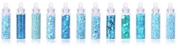 Glitters en steentjes epoxy set 12 buisjes Blauw figuurtjes voor resin, nagels, decoratie, makeup, s