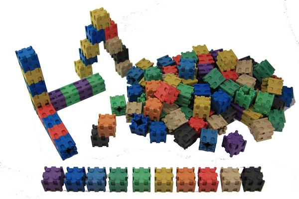 Inklikbare kubussen met verschillende spelmogelijkheden. In te zetten bij rekenen, patroon- of sorteeractiviteiten. Omdat alle kubussen precies 2 x 2 x 2 cm zijn, kunnen ze ook gebruikt worden voor meetactiviteiten. De kubussen kunnen langs alle kanten met elkaar verbonden worden. De kubussen worden geleverd per 100 (10 x 10 kleuren).