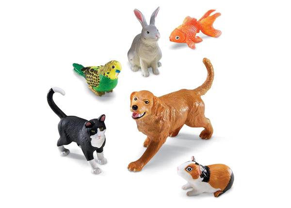 Leuke speelset van jumbo huisdieren. Met deze realistische huisdieren is het nog eens zo makkelijk om de verschillende soorten te leren kennen. De set bevat een konijn, vis, kanarie, hond, kat en cavia. De huisdieren zijn zeer groot en zijn tot wel 20 cm lang.