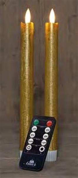 LEDkaars 3D Flame Candle Rustiek Goud Anna's Collection met afstandsbediening D 2,5 H 23 cm 2 stuks