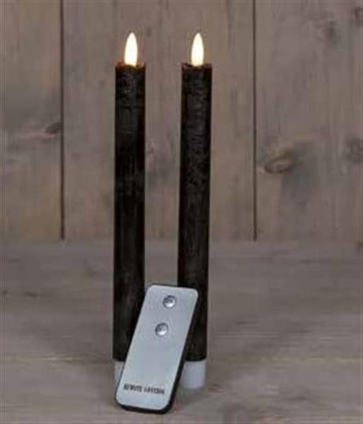LEDkaarsen Anna's Collection LED kaars 3D Flame Candle Rustiek Zwart met afstandsbediening D 2,5 H 23 cm /2 stuks Het betreft 2 stuks van 23 cm. Let op: Niet elke oplaadbare batterij past in deze dinerkaars. Wij raden de batterijen van Varta aan. Batterij: 2*2AA, niet inbegrepen Decoflorall.nl