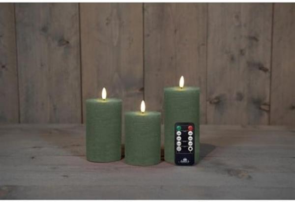 Set van drie Anna's Collection LED kaarsen flame effect rustiek Jade groen