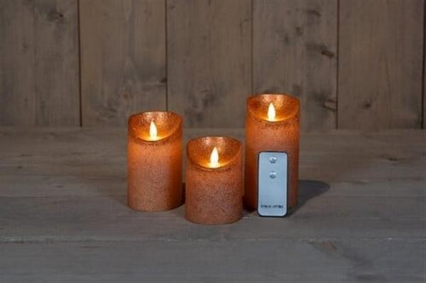 Set van drie Anna's Collection LED kaarsen flame effect rustiek koper