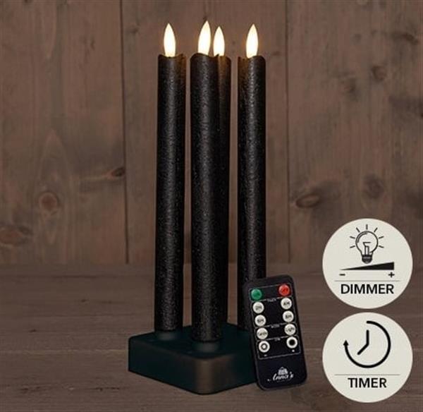 Deze oplaadbare LED-kaarsen in een set van 4 stuks zijn een stijlvolle en duurzame keuze voor sfeervolle verlichting. De kaarsen hebben een prachtige zwarte kleur en een realistisch kaarseffect, zonder de nadelen van echte vlammen.