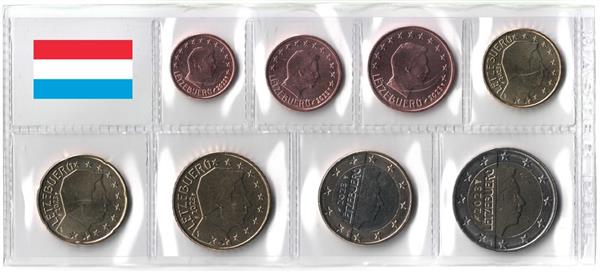 Luxemburg UNC 2023. Dit is de complete set Euromunten Luxemburg 2023. De complete set bestaat uit 8 verschillende munten = 1 cent tot en met de 2 Euro. De 2 Euromunt in deze set is de normale 2 Euromunt van Luxemburg 2023. Op alle Luxemburgse munten is Groothertog Henri (Hendrik) afgebeeld, naar rechts kijkend. Bij de 1 cent + 2 cent + 5 cent munten staat de landsnaam Letzebuerg (Luxemburg) aan de onderkant van de munt met daarnaast het jaartal 2023. Bij de 10 cent + 20 cent + 50 cent munten staat de landsnaam Letzebuerg aan de linkerkant van de munt met daaronder het jaartal 2023. Bij de 1 Euro en de 2 Euromunt staat de landsnaam Letzebuerg verticaal met daarboven het jaartal 2023. Opmerkelijk is dat met ingang van het jaar 2018 het muntmeesterteken is veranderd. De complete UNC serie Euromunten van Luxemburg heeft nu de Raaf als muntteken! Dit muntteken ziet men links naast het jaartal. Bij Eurocoinhouse kunt u allerlei verschillende soorten euromunten kopen, maar ook accessoires, sets en bijzondere uitgaves van herdenkingsmunten.