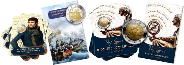 Malta 2 Euro 2023 'Napoleon Bonaparte' + Malta 2 Euro 2023 'Nicolaas Copernicus'. Napoleon Bonaparte was een Franse generaal en dictator, geboren in Corsica op 15 augustus 1769. Hij pleegde in 1799 een Staatsgreep, waarbij hij zich in 1804 tot keizer van Frankrijk liet uitroepen. Tijdens zijn bewind wist hij een groot gedeelte van Europa onder zijn gezag te brengen. Malta was reeds onder Frans bewind sinds 1798 maar Napoleon Bonaparte had hier later een belangrijk aandeel in. Hij voerde onder andere vrij onderwijs en persvrijheid in. Omdat de Fransen 225 jaar geleden Malta bezette en Napoleon Bonaparte hier een belangrijk aandeel in had, heeft Malta besloten om hier een bijzondere 2 Euromunt over uit te geven. Op de voorkant van de munt ziet men de tekst: 225TH ANNIVERSARY ARRIVAL OF THE FRENCH IN MALTA. En ziet men de Franse zaaister. Tot slot ziet men het jaartal van uitgifte, 2023. Nicolaas Copernicus was een astronoom en wiskundige die de zon in het midden van het universum opstelde, in plaats van de aarde. Dit deed hij middels een heliocentrisch model. Nicolaas Copernicus werd geboren in de Hanzestad: Thorn, welke onder Pools gezag stond. Hij sprak maar liefst 7 talen, waaronder: Latijns, Grieks, Italiaans, Pools en Duits. Hij werd 550 jaar geleden geboren, in het jaar 1473, vandaar dat de Maltese Bank heeft besloten om hier een bijzondere 2 Euromunt over uit te geven. Op de voorkant van de munt ziet men een afbeelding van Nicolaas Copernicus voor zijn heliocentrisch model, waarbij de zon centraal in het universum is opgesteld. Verder ziet mijn zijn naam NICOLAUS COPERNICUS (Nicolaas Copernicus) wordt het jaartal van uitgifte, 2023 weergegeven en de landsnaam: Malta. De munten zijn beide verpakt ineen schitterende verpakking en kennen beide een oplage van slechts 70.000 exemplaren. Bij Eurocoinhouse kunt u allerlei verschillende soorten euromunten kopen, maar ook accessoires, sets en bijzondere uitgaves van herdenkingsmunten.