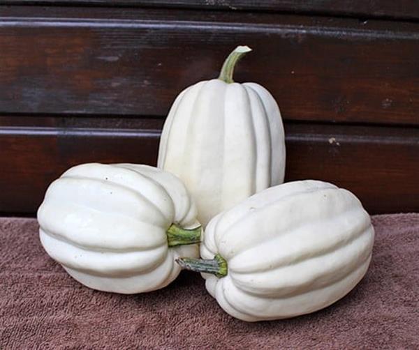 Prachtig uitgesproken, puur witte, langwerpige geribdevruchten, met een gewicht van ongeveer 600-900 gram en zeer decoratief. Gehalveerd, zonder klokhuis en gekookt in de oven, vervolgens geschild, kan een heerlijke puree worden bereid als bijgerecht, vergelijkbaar met aardappelpuree, met de toevoeging van zout, kruiden en een beetje olie. De planten groeien kort, bossig en zijn zeer productief. Cucurbita pepo Baked Potato F1 groeit compact met zeer korte ranken 1 portie = 8 zaden Rijpingstijd: ongeveer 90 dagen Pompoenen gedijen goed op warme, goed gedraineerde grond, voorkweek en planten met zaaien vanaf eind april of direct zaaien vanaf begin mei Geweldig voor het vullen en koken, ook erg decoratief Voor Mashed Potato F1 raden we 1 m² per plant aan Mogelijk ongedierte: slakken, vogels, muizen, luizen, echte meeldauw, virus Decoflorall.nl