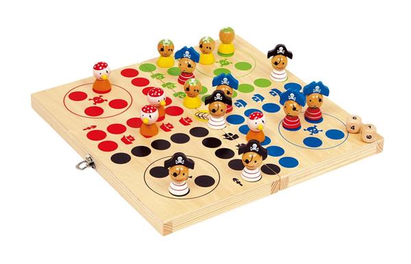 Mens Erger Je Niet in het thema piraten. De droom van jonge piraten wordt met dit spel werkelijkheid. Hier strijden 4 verschillende piratenclans tegen elkaar! Probeer als eerste al je piraten naar hun plaats te brengen. Het spelbord dient ook als handige opbergdoos en kan makkelijk worden vervoerd.