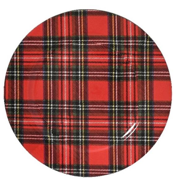 Onderbord Tartan Schotse ruit Rood blok 33 cm rond kunststof