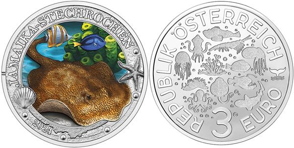 Oostenrijk 3 Euro 2024 'Gele Pijlstaartrog'