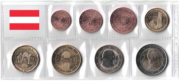Oostenrijk UNC 2023. Dit is de complete set UNC van Oostenrijk 2023. Op de koperen munten ziet men bijzondere Oostenrijkse bloemen. Op de 1 cent ziet men de Gentiaan. Op de 2 cent ziet men de Edelweiss en op de 5 cent ziet men de Primula. Op de 10 cent en 20 cent en 50 cent munten ziet men bijzondere Weense Bouwwerken, namelijk op de 10 cent de Stephansdom, op de 20 cent het Slot Belvedere en op de 50 Cent ziet men het Sessionsgebouw. Op de 1 Euro ziet men Mozart en op de 2 Euromunt is Bertha von Suttner afgebeeld. Bij Eurocoinhouse kunt u allerlei verschillende soorten euromunten kopen, maar ook accessoires, sets en bijzondere uitgaves van herdenkingsmunten.