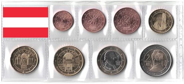 Oostenrijk UNC 2024. Dit is de complete set UNC van Oostenrijk 2024. Op de koperen munten ziet men bijzondere Oostenrijkse bloemen. Op de 1 cent ziet men de Gentiaan. Op de 2 cent ziet men de Edelweiss en op de 5 cent ziet men de Primula. Op de 10 cent en 20 cent en 50 cent munten ziet men bijzondere Weense Bouwwerken, namelijk op de 10 cent de Stephansdom, op de 20 cent het Slot Belvedere en op de 50 Cent ziet men het Sessionsgebouw. Op de 1 Euro ziet men Mozart en op de 2 Euromunt is Bertha von Suttner afgebeeld. Bij Eurocoinhouse kunt u allerlei verschillende soorten euromunten kopen, maar ook accessoires, sets en bijzondere uitgaves van herdenkingsmunten.