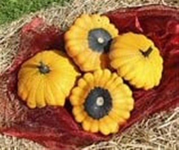 Hybride in geeloranje vruchten. Deze hybride heeft vruchten van wel 15-18 cm. (8 zaden) Decoflorall.nl