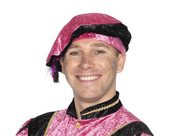 Pietbaret velour met struisveer roze
