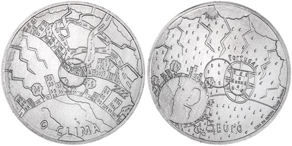 Portugal 5 Euro 2022 ´Het Klimaat´. Portugal heeft een 5 Euro uitgegeven met als thema: Het klimaat. Deze munt staat stil bij de natuur en kijkt wat de onderlinge verhouding is tussen de uitstoot van broeikasgassen en de koolstofbalans van bossen en bodem. We moeten kijken naar de invloed van de mens met de bijhorende menselijke factoren die worden uitgeoefend op de natuur. We moeten kijken naar het verleden zodat we de toekomst kunnen beschermen. Er zijn vele verschillende studies, één ding hebben ze gemeen: Er moet wat gebeuren, zodat de natuur en mensheid ook in de toekomst kan leven op de aarde. Op de voorkant van de munt ziet men een kindertekening die de volgebouwde aarde weergeeft waarbij de bliksemschichten de aarde raken. Op de achterkant van de munt ziet men wederom een kindertekening die de aarde weergeeft, eveneens met regen en bliksemschichten en wordt de waardeaanduiding van 5 Euro weergegeven met in het midden de landsnaam: Portugal. De munt is verpakt in een bedrukte munthouder. Bij Eurocoinhouse kunt u allerlei verschillende soorten euromunten kopen, maar ook accessoires, sets en bijzondere uitgaves van herdenkingsmunten.
