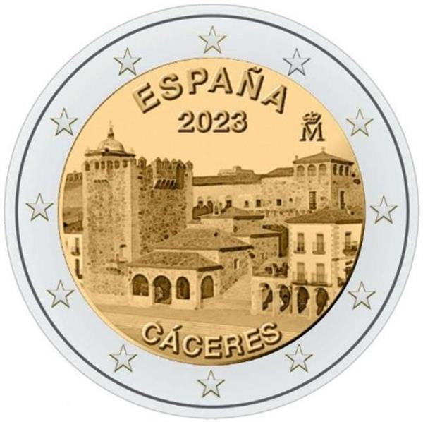 Spanje 2 Euro 2023 ´Cáceres´. De Spaanse stad Cáceres, is de hoofdstad van de gelijknamige provincie dat men vindt in de regio Extremadura. De stad kent ruim 95.000 inwoners en het oude centrum staat volledig op de UNESCO-Werelderfgoedlijst sinds 1949. Het oude centrum, dat ligt op de heuvel, staat vol met paleizen, torens, oude gebouwen en stadsmuren. De stad is eigenlijk nooit verwoest tijdens oorlogen en de oude gedeeltes zijn dus nagenoeg intact gebleven. De stad wordt ook wel het pareltje van Extremadura genoemd. Op de voorkant van de munt ziet men een afbeelding van de oude binnenstad Cáceres en wordt de naam onderaan de munt weergegeven. Bovenin de munt ziet men de landsnaam: ESPANA (Spanje) en wordt hieronder het jaartal van uitgifte, 2023 weergegeven. De munt is verpakt in een bedrukte munthouder. Bij Eurocoinhouse kunt u allerlei verschillende soorten euromunten kopen, maar ook accessoires, sets en bijzondere uitgaves van herdenkingsmunten.