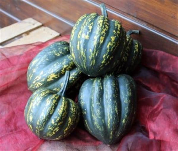 Prachtig uitgesproken,donkergroen gespikkeld en gestreept met een gewicht van ongeveer 1000-1300 gram en zeer decoratief. Gehalveerd, zonder pitten en gekookt in de oven, een smakelijk bijgerecht dat doet denken aan een gepofte aardappel. De planten groeien kort, bossig en zijn zeer productief. Cucurbita pepo Acorns 1 portie = 8 zaden Rijpingstijd: ongeveer 90 dagen Pompoenen gedijen goed op warme, goed gedraineerde grond, voorkweek en planten met zaaien vanaf eind april of direct zaaien vanaf begin mei Geweldig voor het vullen en koken, ook erg decoratief Voor Acorns raden we 1 m² per plant aan Mogelijk ongedierte: slakken, vogels, muizen, luizen, echte meeldauw, virus Decoflorall.nl