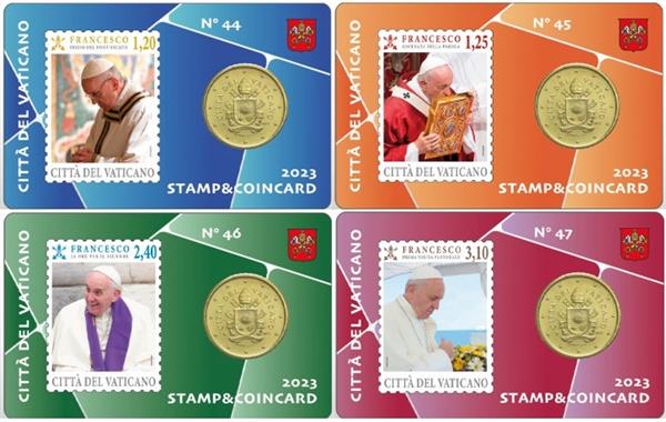 Vaticaan 2023 Coincard + Post zegel Nr. 44 + 45 + 46 + 47