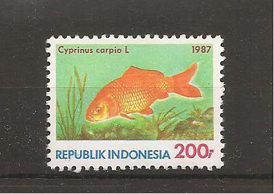 MNH postzegel cyprinus carpio vis uit 1987 Indonesie