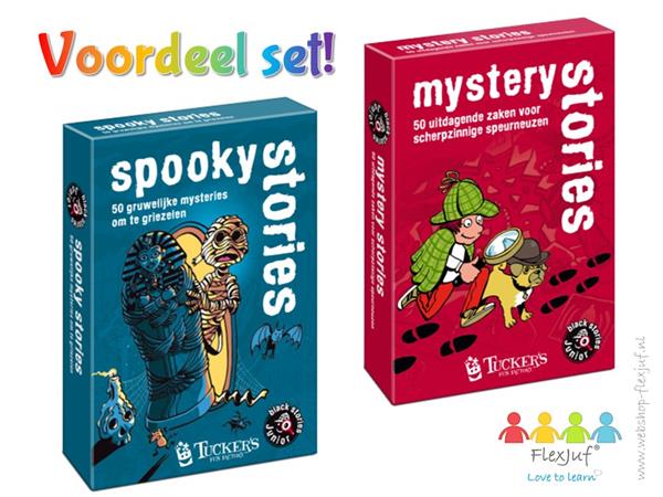Dit is een voordeelset van 2 spellen: Spooky Stories en Mystery Stories (de oude 'red' stories. Spooky Stories (8+): Wanneer bleke bloedzuigers zich met hun tanden in je nek willen vastbijten, woeste weerwolven huilen naar de maan en muffe mummies om middernacht uit hun graf kruipen dan is de tijd voor kippenvel en klapperende tanden aangebroken! Spooky stories zorgen dat het bloed in je aders stolt. Je kunt deze duistere geheimen alleen ontwarren met vragen raden en puzzelen. Mystery Stories (8+):